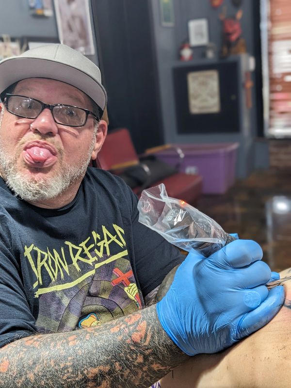 West Coast Born and raised with Southern traditions in California. With 25+ years of the art of tattooing and piercing, he is a tatted grandpa often called 'Papa' around here who loves to laugh and have fun! "Art and family are my passions. Know a good joke? I'm all ears!"