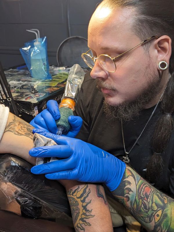 A Shoals Area native, having been raised in Tuscumbia, AL! Began working towards a tattoo career over the past decade . "I am most drawn to traditional/neotraditional art, both grayscale and complex colors."